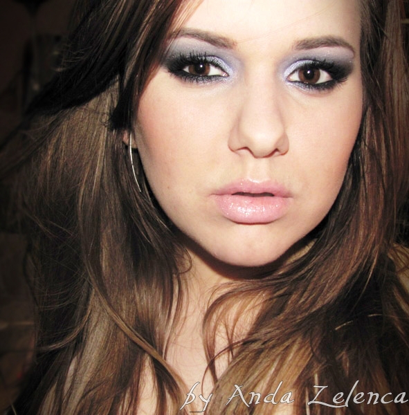 And btw, sunt foarte suparata pe poze, machiajul pare facut cu albastru, dar de fapt este un mov cu tente albastrui. Damn!